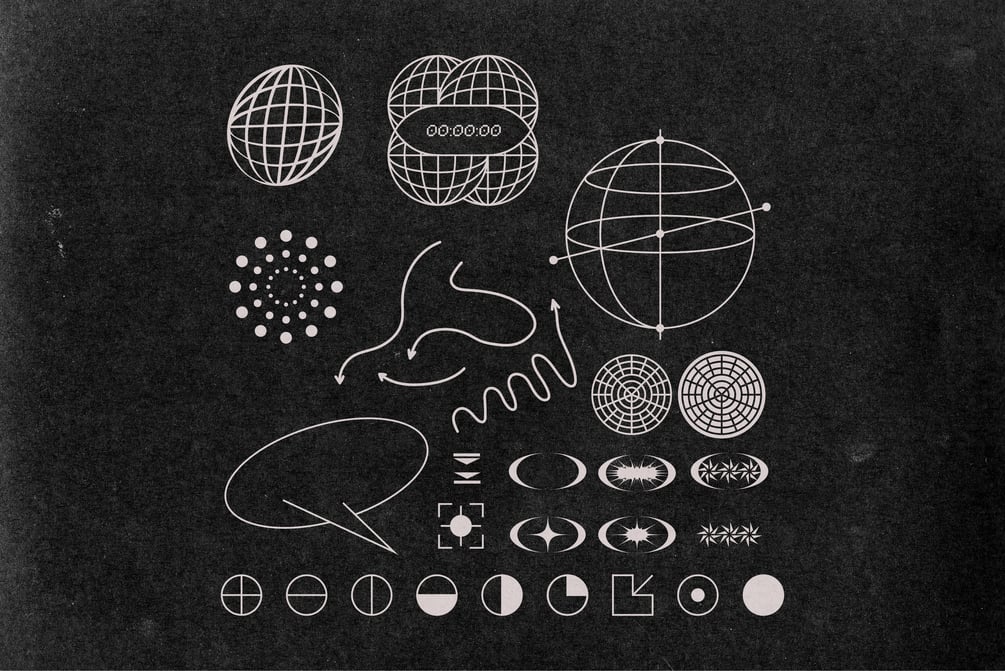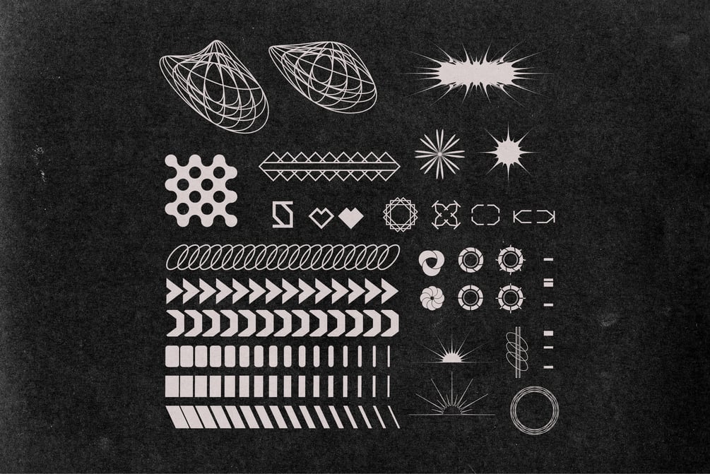 This is a Futuristic Vector Pack of more than 100 Vector Shapes that you can use in your posters, logo elements, stickers, album covers etc to make your design unique or add to it a retro or futuristic vibe.