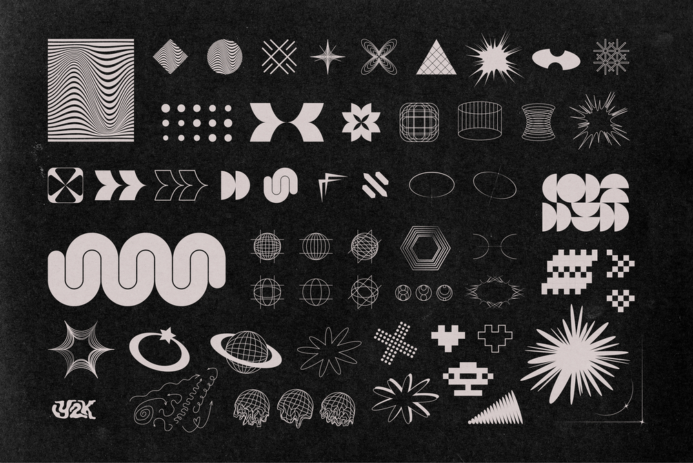 This is a Futuristic Vector Pack of more than 100 Vector Shapes that you can use in your posters, logo elements, stickers, album covers etc to make your design unique or add to it a retro or futuristic vibe.