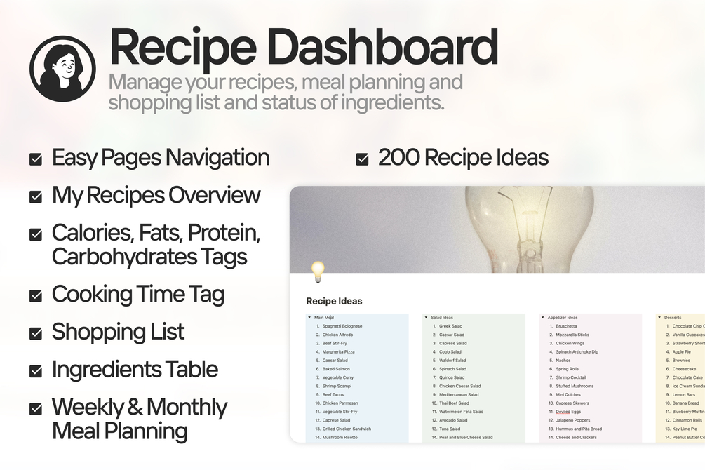 You will get ultimate Recipe Dashboard including 200+ Recipe Ideas for FREE.