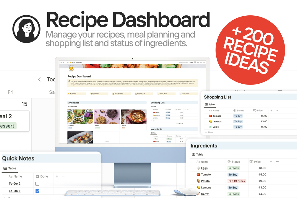 The Recipe Dashboard Notion Template is a dynamic and comprehensive tool designed to elevate your culinary endeavors. With its intuitive navigation, extensive recipe ideas, and essential culinary features, it offers a holistic solution for optimizing your cooking experience. Embrace the joy of cooking with this powerful Notion template.